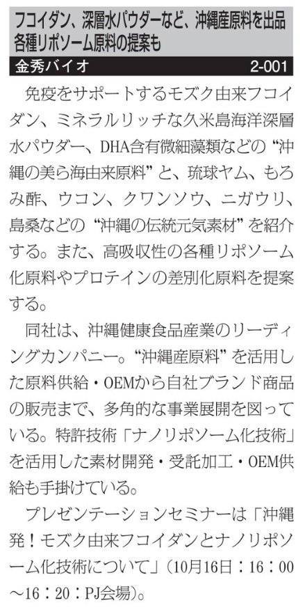 健康産業新聞2025年9月3日第1819号10面、食品開発展2025 出展企業紹介で弊社の記事が掲載されました。