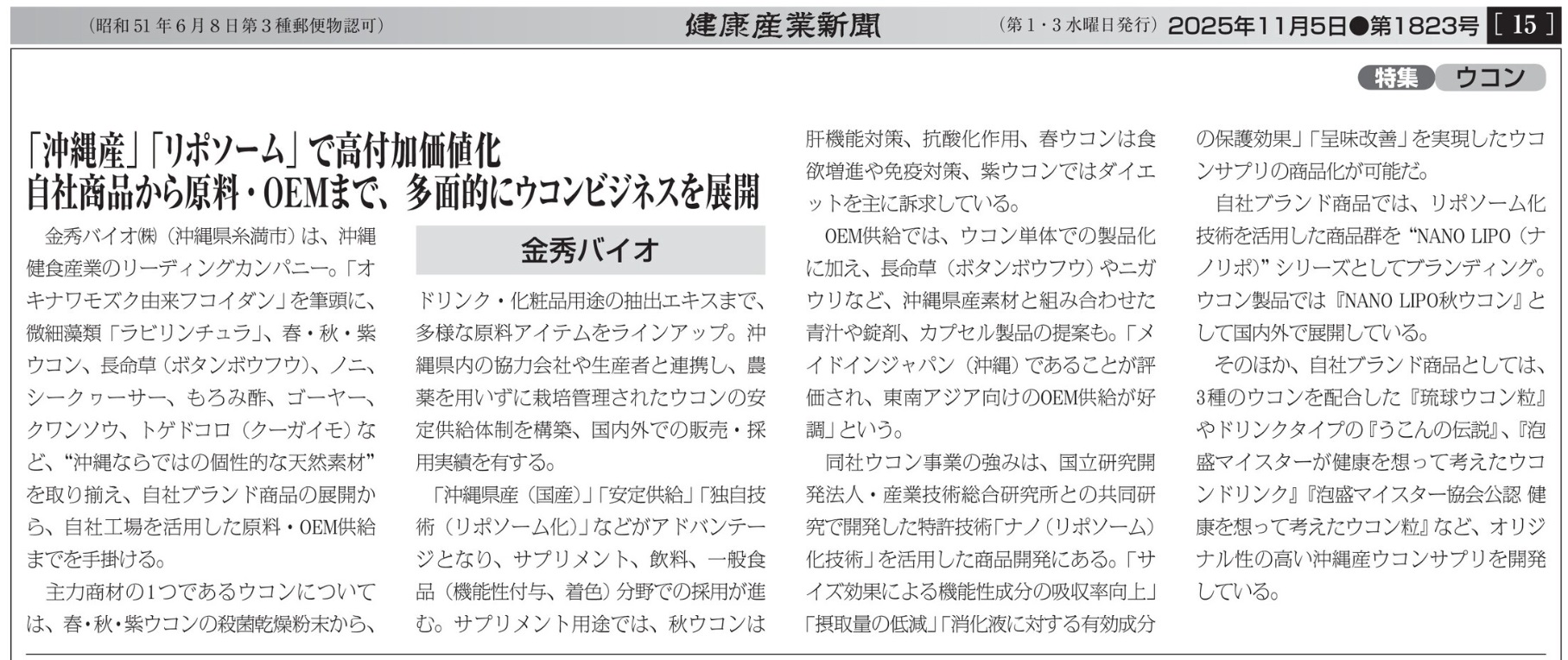 健康産業新聞2025年11月5日第1823号15面ウコン特集
