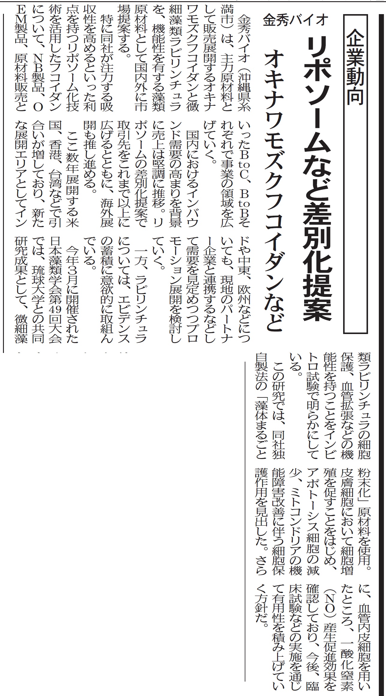 健康産業流通新聞2025年11月20日(第1149号)6面、機能性藻類特集で弊社の記事が掲載されました。